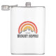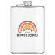Well made flask, a little better than I had expected. Flask came in clear plastic box which gave it a nice presentation when I took it out of the zazzle packaging. Image is not printed on flask but on sticker. Don't know how this will hold up I haven't used it yet. This would make a Great gift! I plan to purchase more for friends! Cheers. I thought a little brighter than computer. Very crisp, writing wasn't