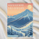 Snowy mountains of Mount Sunapee, New Hampshire, USA! We hope you're having a wonderful ski vacation. This postcard features a gorgeous blue-grey mountain landscape in front of a yellow orange sky.