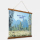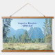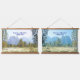 Wood topped wall tapestry with scenery of mountains. The design features Blue Sky, Nature and Mountain silhouette on a misty morning background. Magnificent Home decor tapestry with vivid Blue colours to brighten your walls for any occasion.