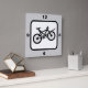 Get a sporty theme with this mountain bike graphic in black and white. This square wall clock is ideal for a den, teen bedroom, or for any cyclist and outdoors man. You can change the color background of this clock from the default silver to any other color in the Zazzle palette -- just click the orange customize button then edit background to choose a different one.