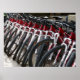 Multiple red and white mountain bikes in a row. Photo: Brigitte Werner