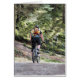 A photographic design of a lone mountain biker enjoying the challenge of the forest trail.