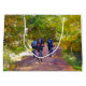 A watercolor of three men mountain biking in the Welsh hills.