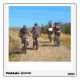 An art design of men mountain biking in the Welsh hills.