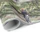A photographic design of a lone mountain biker enjoying the challenge of the forest trail.