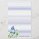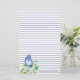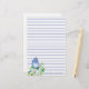 A lined stationery paper featuring a mountain bluebird and blooming syringa flowers inspired by the state bird and state flower of Idaho painted with watercolor.