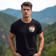 This T-shirt is perfect for a mountain climbing enthusiast. The circular design is a white silhouette mountain climber with a sunset in the background and the writing "Mountain Climbing Is My Therapy" around it. This T-shirt can be personalized by adding an individual's name on the back of the T-shirt.