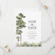 Mountain Forest Save The Date. Invite your guests to embark on a journey into the majestic beauty of nature with our elegantly hand-painted watercolor save-the-date cards. Each card beautifully captures the essence of a tranquil woodland forest, complete with lush green trees and stunning mountain vistas. The perfect choice for couples seeking a unique and unforgettable way to announce their special day.