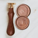 Before the wax hardens, gently and evenly press the wax seal stamp into the melted wax, ensuring it's centered.