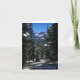 Winter landscape of snowy woods, mountains and clear blue skies. Small holiday greeting cards.