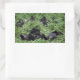 Rectangular photo sticker of a group of wild mountain gorillas with silverback and babies chilling in the green jungle of the Volcanoes national parc in Rwanda at the border with Congo and Uganda.