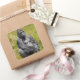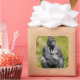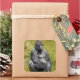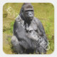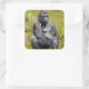 Square sticker with an image of an extreme realism color pencil and watercolor painting of an African Mountain Gorilla and an optional important message.