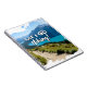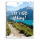 This design features a stunning lake in rugged mountains with the phrase "Let's Go Hiking!"