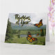 Thinking of You card with nature, mountain lake, mountains and monarch butterflies. Create your unique card with text and your photos on the inside. Show your friends, family and business associates they are unique and special with their name and your message printed on the front and/or inside. Envelope included.