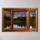 Window with a View Faux Poster Print - Mountain Lake Reflection Scene. Enhance the decor of any room with this picturesque poster. The artwork creates the illusion of having a fancy wooden bay window to look out of. The mountain lake reflection makes you feel as though you are looking out at a picturesque mountain scene. The original artwork is 36"W x 24"H which is the average poster size and was created at high resolution (300 dpi) so re-sizing it is not a problem. The background scene of this poster is a lot wider so you can slide it left or right to feature a different view by clicking on "edit design". See other beautiful scenes in my store. Feel free to contact me if you have any questions.
