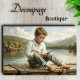 Transform your furniture with a touch of timeless nostalgia using our 'Mountain Lake Reverie' decoupage tissue paper. This captivating design features a young boy lost in thought as he fishes from a weathered wooden dock, set against the backdrop of a serene mountain lake. The soft, realistic style and warm color palette evoke the simple joys and quiet contemplation of childhood summers past.