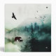 On a misty autumn day, a mother bear and cub walk through a forested, mountain landscape while birds fly overhead. Beautiful, evocative, perfect for anyone who loves the outdoors and nature. Use for photographs, journaling or scrapbooking.