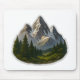 A majestic mountain landscape with snowy peaks and green pine forests. Peaceful, natural, and inspiring.