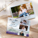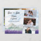Wedding Save the Date with 4 photos - perfect scene-setter for a mountain wedding resort or destination wedding in scenic countryside. The design features modern typography and an idyllic watercolor landscape. The dreamy mountain ridge scene depicts mountains, green hills and a peaceful country valley meadow with swathes of lavender, purple wildflowers or highland heather moor - whatever speaks to you and your chosen destination. For co-ordinating invitations, stationery and day-of-event decor, please browse my Mountain Lavender Wedding Collection or message me to add any additional items you need.