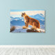 Wrapped canvas art is shown with a photo print of a beautiful wild mountain lion during the winter months.