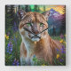 Mountain Lion Floral Square Wall Clock