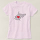 Fun woman's cotton tee for the true West Virginian... design features the common state phrase "Mountain Mama" repeated within the framework of W.V. - a red heart shows everyone how much you love your home state..