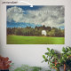 Poster featuring a vintage style photo of mountain landscape. Majestic white clouds, blue mountains peaks, astronomical observatory, forest and green meadow. Stylish gift for outdoor enthusiasts, dreamers and adventures seekers. This poster will be a stylish addition to your your living or working space. It will fit in perfectly with most interior design styles. You can delete the text "The road doesn’t tell the traveler what lies ahead"