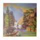 This is a reprint of a Ives lithograph called, "Mountain Pass", is a colorful image of rugged Western American mountain wilderness. With mountain peaks, pine trees, a bear, rapids a stream, and a Native American brave in the upper right, it shows the wilderness that many people from the Eastern United States only read about or saw in pictures.