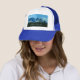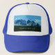 This trucker's hat features a vibrant photograph of majestic mountain peaks in Denali National Park, that's been digitally enhanced to look like a painting. The text reads 'The mountains are calling and I must go', a famous and popular quote by Naturalist John Muir. There are many hat colors to choose from.