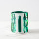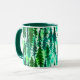 Mug in a watercolor pattern of pine trees in a mountain forest, in shades of medium to dark pine green on a soft, watercolor background
