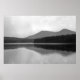 A peaceful and serene setting...the mirror image of mountains and trees reflected in a pond in the White Mountains of New Hampshire forms an abstract pattern of black, white and gray. This is a simple and elegant fine art photography travel poster.