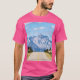 My 11 yo wore adult XL (5’7” 165#). The 8yo is small framed. She wore adult small and tied it in the back. Grandma wore adult large with long sleeve shirt underneath. Tall girl adult medium. Dark haired male adult large. Good quality dark Heather gray, Gildan brand shirt. -it was next up from basic choice and cost about $20 per shirt. Not too thick or thin. Washed and dried well, no major shrinkage. Not see-through. Can wear a bra under it fine. Screen print is just as shown and well done, front and back.