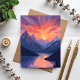 Mountain Range Sunset | Watercolor Lake Landscape Painting Card