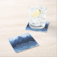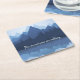 Mountain Reflections Design Paper Coaster with customizable text, in various shapes.