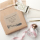 Rustic square return address sticker as a beautiful wedding mailing accessory with kraft paper background and decorative font w mountain and forest illustration on the bottom