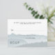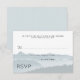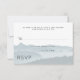 Mountain ridge wedding rsvp enclosure cards with custom text. Include a line to ask guests for an exact count, if you wish, or remove it and word it as you like. Blue gray and white, with misty mountains background image.