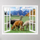 Mountain Scene Alpaca Landscape Art Window View Poster