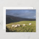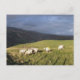 A photographic design of Welsh mountain sheep grazing on the sunny hillside just as the rain is about to start.