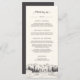 Our rustic chic wedding or special event menu features your starter courses, entrees and desserts accented with a sketched illustration of mountain peaks, pine trees and a flowing river, with "menu" at the top in elegant calligraphy lettering. Coordinates with our Mountain Sketch wedding collection.