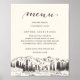Designed to match our Mountain Sketch wedding collection, this rustic elegant sign displays your wedding reception menu in dark plum brown lettering on a warm ivory background. A hand sketched illustration appears along the bottom, featuring mountain peaks, pine trees and a flowing river.