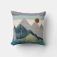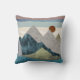 Modern landscape with unique colors and patterns showing a mountain landscape with a striped skyline.