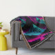 A quality printed throw has its advantages. This is a much finer weave throw than its loopier cousins, and though lighter, it is worth the investment for custom room accessorizing. The back is much prettier than the typical brown, and the fringe on the long sides very vivid, the selvage nicely done. Before photographing, I washed the throw in cold water, delicate, with a thicker woven throw the same size. On tumble dry low, this throw was dry in half the time as the other. This is a very practical quality if you use throws for furniture covers or to wrap up in frequently. The sleekness of the fabric makes it a great layer for accenting or protecting without the feeling of sitting on too much stuff. Perfect for napping or when you feel a light chill coming on. The color printing is beautiful and on this fabric, matched the design and color of my Photoshop image. This is an advantage for blending room fabrics and colors. The fringe on the short sides prints the colors from the design image and therefore varies from the side fringe. I streaked a white fractal line through the plaid pattern to give the illusion of weaving. This printed as crisp as an illusory thread, and put some white in the short side fringe, showing another advantage of print vs loomed- for artistic purposes, line lines, detail, and color integrity can be planned and preserved. My loomed throws have color limitations and more of a needlepoint texture. Print throws reproduce an exact image. The throw felt a little stiff straight out of the package, but this went away in the first delicate wash. Of course I searched the wash water for ink or bleeding and there was none.