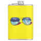 Well made flask, a little better than I had expected. Flask came in clear plastic box which gave it a nice presentation when I took it out of the zazzle packaging. Image is not printed on flask but on sticker. Don't know how this will hold up I haven't used it yet. This would make a Great gift! I plan to purchase more for friends! Cheers. I thought a little brighter than computer. Very crisp, writing wasn't