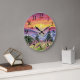 A beautiful hand painted landscape of a sunrise and mountain scene.