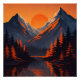 Mountain Sunset Reflection Fiery Orange Sky Poster