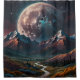 Mountain Top View Over Valley with Distant Moon Shower Curtain