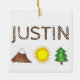 Ornament features an original marker illustration of a mountain, sunshine, and tree. Just personalize with the name of your favorite camping, hiking or outdoor enthusiast.