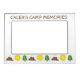 Picture frame design features an original color illustration of a mountain, tree, and sunshine. Perfect for displaying summer camp memories.