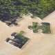 Majestic summer landscape: mountain peaks, blue sky and wooden cottages among trees. Great gift for nature, tourism, and hiking lovers. You can delete the text "The journey matters more than the destination" or replace it with your own message (click "Personalize this template").
