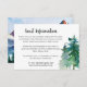 The front of the card has two large, green pine trees. You can edit all of the text details. You can add any details you need, for example: reception information, adults only event, website address, registry information, accommodations, dress code, cash bar, etc. The words "Guest Information" can be changed to Reception, Accommodations, Details, etc. The back of the card is designed with mountains, water, pine trees and a blue sky in watercolor. This card matches a mountain wedding collection in my store.